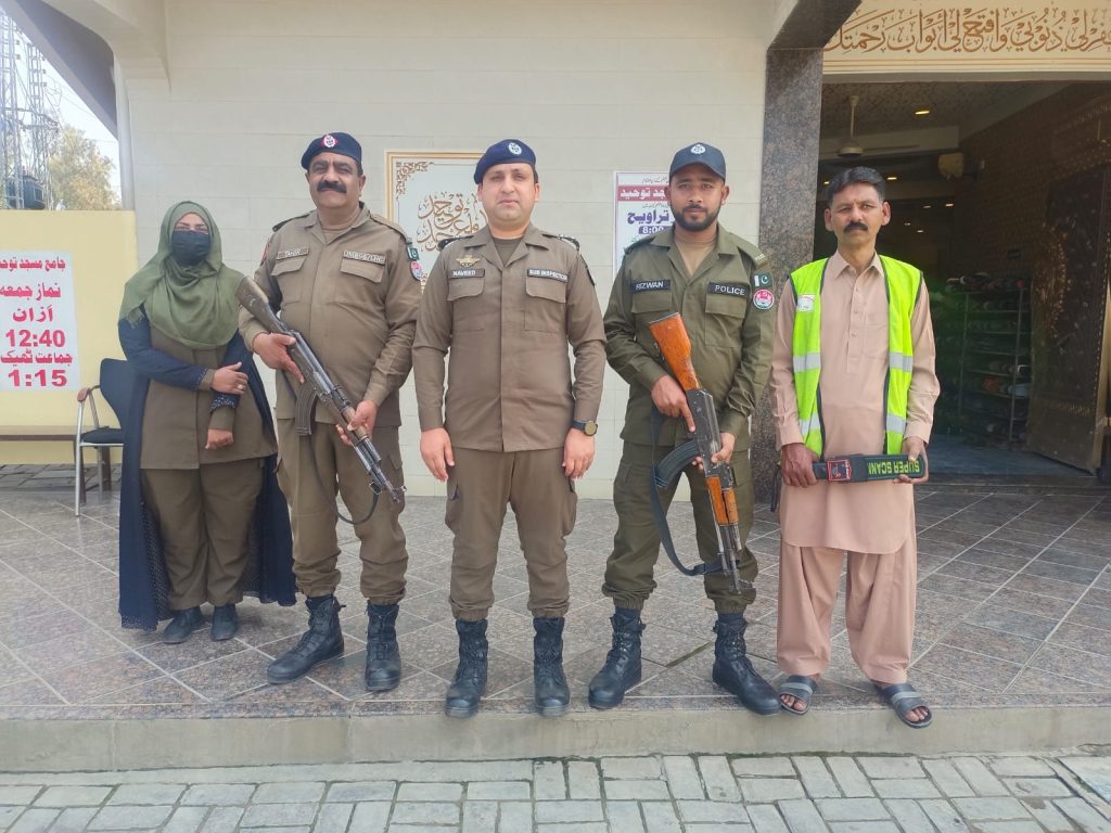 نماز جمعہ کے موقع پر امن و امان بر قرار رکھنے کے لئے ایلیٹ فورس، محافظ اسکواڈ اور تھانہ جات کی موبائلز گشت پر مامور ہیں
