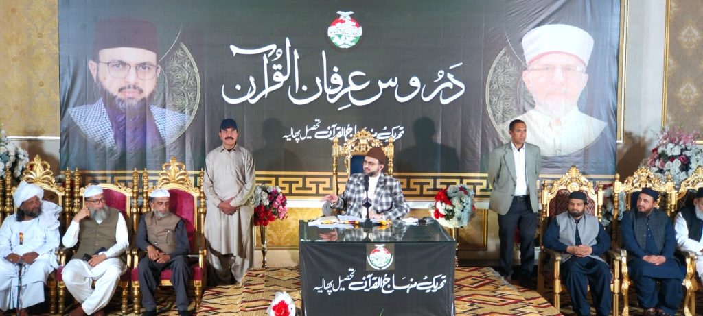 23 مارچ بروز ہفتہ کو تحریک منہاج القرآن پھالیہ کے چھ روزہ ماڈل دروس عرفان القرآن کا چھٹا اور آخری پروگرام تھا جس میں خصوصی خطاب کے لیے جناب صاحبزادہ ڈاکٹر حسن محی الدین قادری تشریف لاۓ۔ تحریک منہاج القرآن ڈنگہ و جوڑہ کی نماٸندگی کرتے ہوۓ علامہ نجیب اکرم قادری صاحب،محترم وحید اقبال قادری صاحب،حاجی محمد یونس صاحب،محمد عارف بٹ صاحب کے ساتھ راقم الحروف نے بھی اس پروگرام میں شرکت کی۔ہم صبح سحری کے فوری بعد یہاں سے روانہ ہوۓ اور چھ بجے گریس مارکی حال پھالیہ پہچ گۓ۔جب ہم حال میں داخل ہوۓ تو عوام کا ٹھاٹھیں مارتا سمندر نظر آ رہا تھا حال میں لگی کرسیاں تو مکمل ہو چکی تھیں اس کے علاوہ سینکڑوں لوگ کھڑے تھے چند منٹ بعد ڈاکٹر حسن محی الدین قادری صاحب نعروں کی گونچ میں حال میں تشریف لاۓ اور چھ بجے خطاب شروع ہو گیا