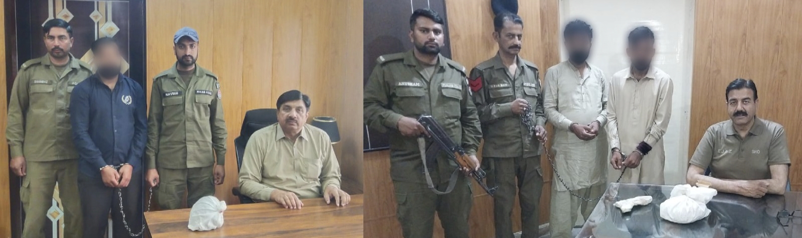 3ملزمان گرفتار، ساڑھے 4کلو سے زائد چرس اور پسٹل 30بور برآمد۔
