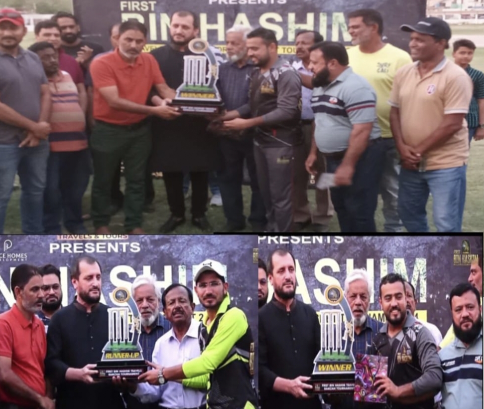 کراچی (اسپورٹس رپورٹر) کراچی کے پاک اسٹار کرکٹ گراؤنڈ ملیر پر پہلے بن ہاشم کرکٹ ٹورنامنٹ کا فائنل انتہائی دلچسب رہا فائنل معرکہ میں فیصل ٹائیگر اور پنجاب کرکٹ کلب کی ٹیمیں مدمقابل تھیں پہلے بیٹنگ کرتے ہوئے 20 اوورز میں 222 رنز اسکور کئے ارسلان نے شاندار بیٹنگ کا مظاہرہ کیا انھوں نے 11 چوکوں اور 4 چھکوں کی مدد سے 102 رنز کی انگز کھیلی جس پر شائقین نے خوب داد دی ایونٹ کے چیف گیسٹ ہاشم خان تھے اس موقع پر ان کا کہنا تھا کہ کراچی میں ٹیلنٹ کی کوئی کمی نہیں ضلع ملیر کےکرکٹرز نے پاکستان کو بے پناہ ٹیلنٹ فراہم کیا ہے مستقبل میں بھی یہاں سے باصلاحیت کھلاڑی نکل کر سامنے آسکیں گےٹورنامنٹ آرگنائزر راجہ آفتاب اور ندیم شاد کا کہنا تھا کہ اس طرح کے ٹورنامنٹ گراس روٹ لیول پر ٹیلنٹ ابھارنے میں سود مند ثابت ہونگےاس موقع پر کھلاڑی پرجوش دکھائی دیئے انھوں نے ٹورنامنٹ کے بہترین انعقاد و خوش آئیند قرار دیا ٹورنامنٹ کی اختتامی تقریب بھی شاندار انداز میں ہوئی فائنل میچ کے مہمان خصوصی ہاشم خان نے انعامات تقسیم کئے ونر ٹیم کو دو لاکھ روپے جبکہ رنراپ کو ایک لاکھ روپے کیش اور ٹرافی انعام میں دی گئی۔
