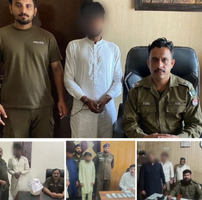 ایس ایچ او تھانہ رحمانیہ مجاہد فاروق اور ان کی پولیس ٹیم نے ناجائز اسلحہ برداروں کے خلاف کاروائی کرتے ہوئے دو ملزمان کو ناجائز اسلحہ سمیت گرفتار کرلیا۔ گرفتار ملزمان 1۔ عدیل ارشد سکنہ رحمانیہ سے رائفل 223بور 2۔ اعتزاز احسن سکنہ چوہان سے رائفل 223بور برآمد کرکے مقدمات درج کرلئے۔ایس ایچ او تھانہ صدر کھاریاں اور اے ایس آئی عاصم ظفر نے پولیس ٹیم کے ہمراہ کاروائی کرکے منشیات فروش اسد علی سکنہ مرزا طاہر کو گرفتار کرکے 640گرام چرس برآمد کرکے مقدمہ درج کرلیا۔
