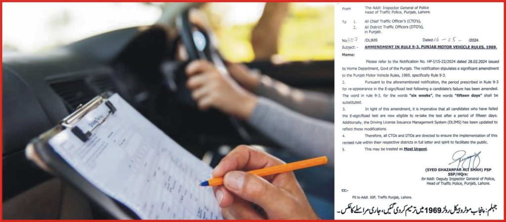 ڈرائیونگ ٹیسٹ میں فیل ہونے والے اب 6 ہفتوں کی بجائے 15دن بعد ٹیسٹ دے سکیں گے