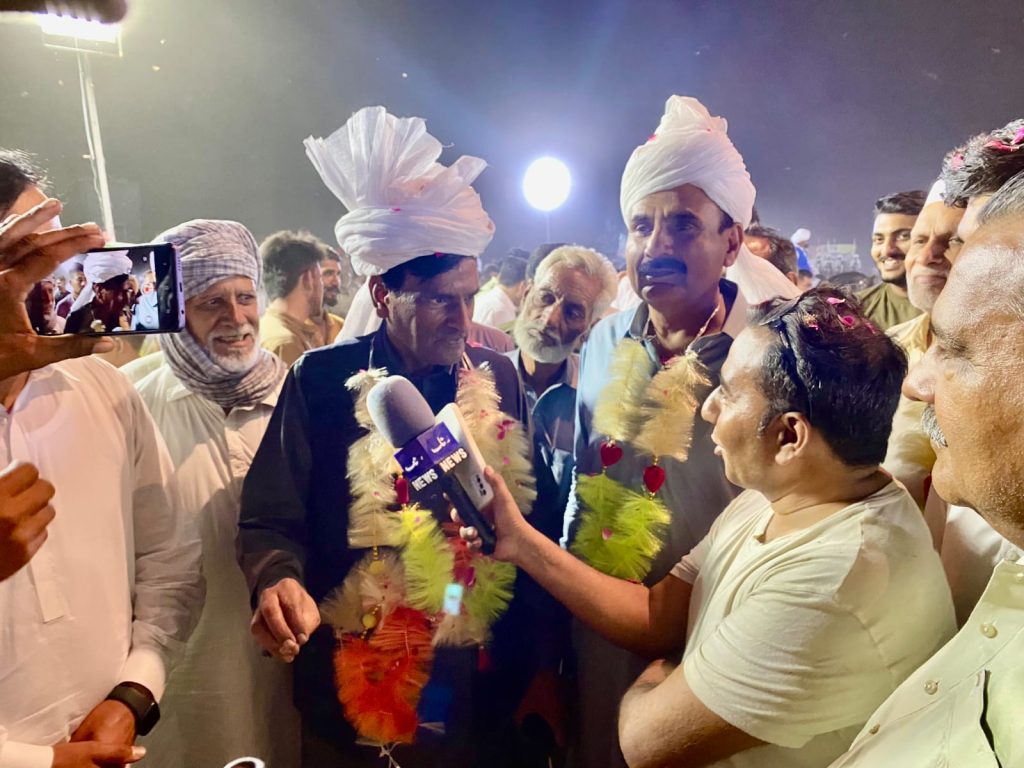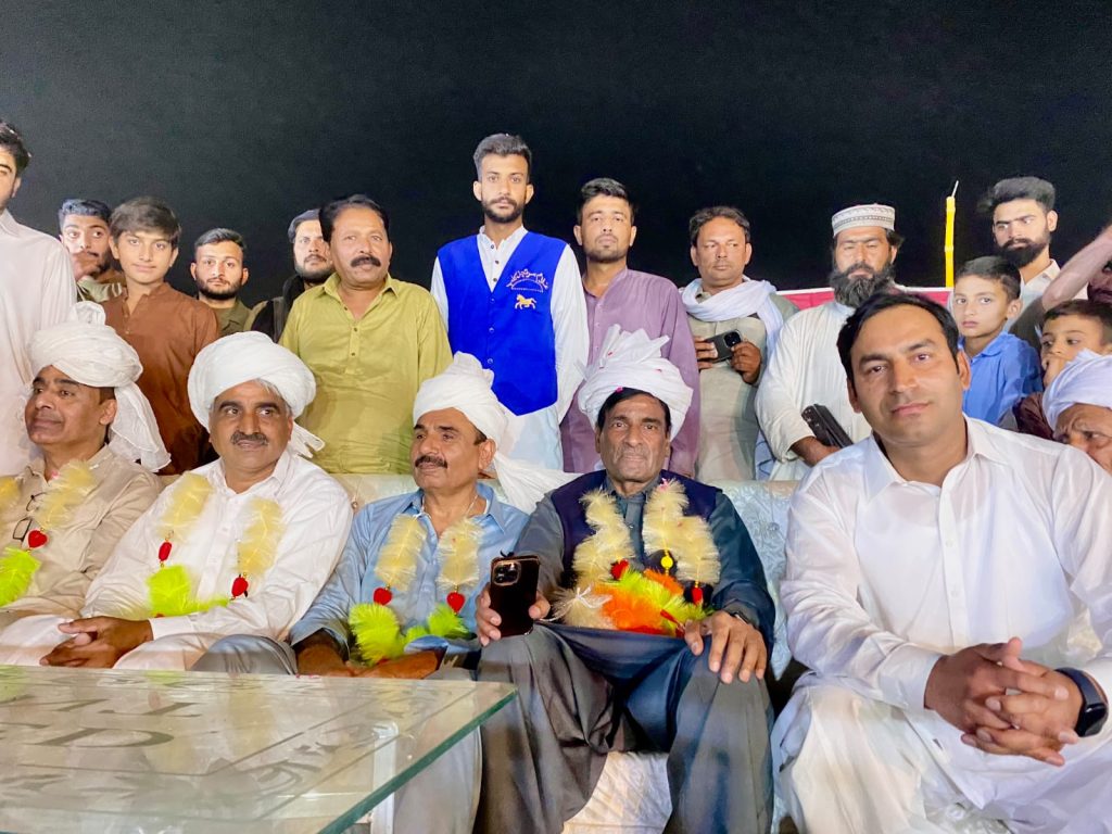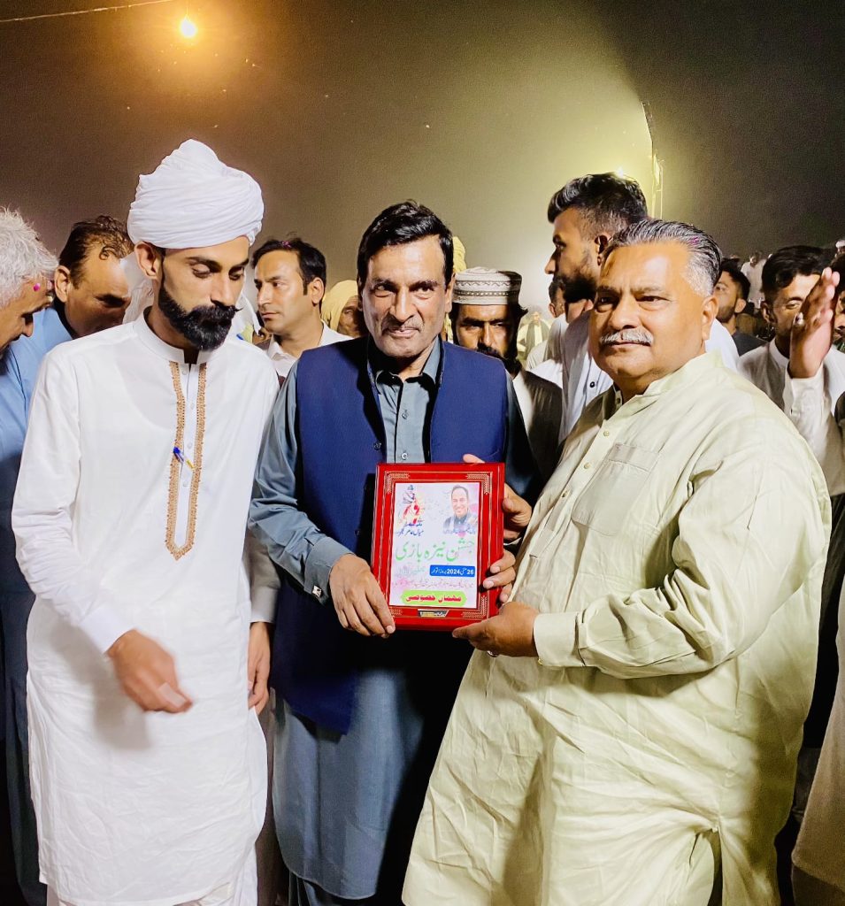 ۔۔۔گرائونڈ میں پہنچنے پر بانی میلہ میاں نعیم سللطان(جرمنی) میاں عامر گجر (چیف آرگنائزر) سابق کونسر چوہدری پرویز احمد گجر اور ان کے ساتھیوں نے ڈھول کی تھاپ پر ،گھوڑ سواروں کے دلکش رقص میں میاں طارق محمود اور ان کے ساتھیوں کا شاندار استقبال کیا گیا
