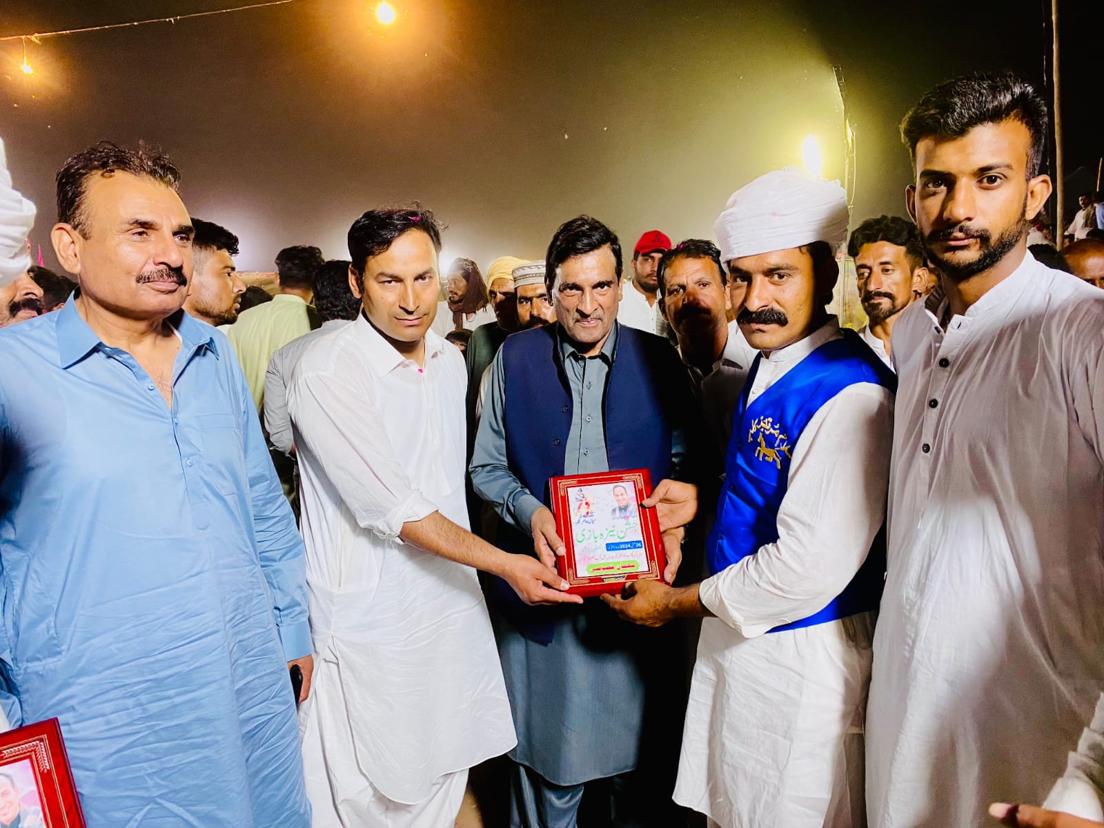 ۔۔پھولوں کی پتیاں نچھاور کی گئیں مالائیں پہنائی گئیں اور کرنسی نوٹ نچھاور کئے گئے۔۔۔میاں طارق محمود کافی دیر تک گرائونڈ میں موجود رہے۔۔آخر میں میاں نعیم سلطان،میاں عامر گجر اور چوہدری پرویز احمد گجر کی جانب سے مہمانوں کو اعزازی شیلڈ پیش کی گئیں۔