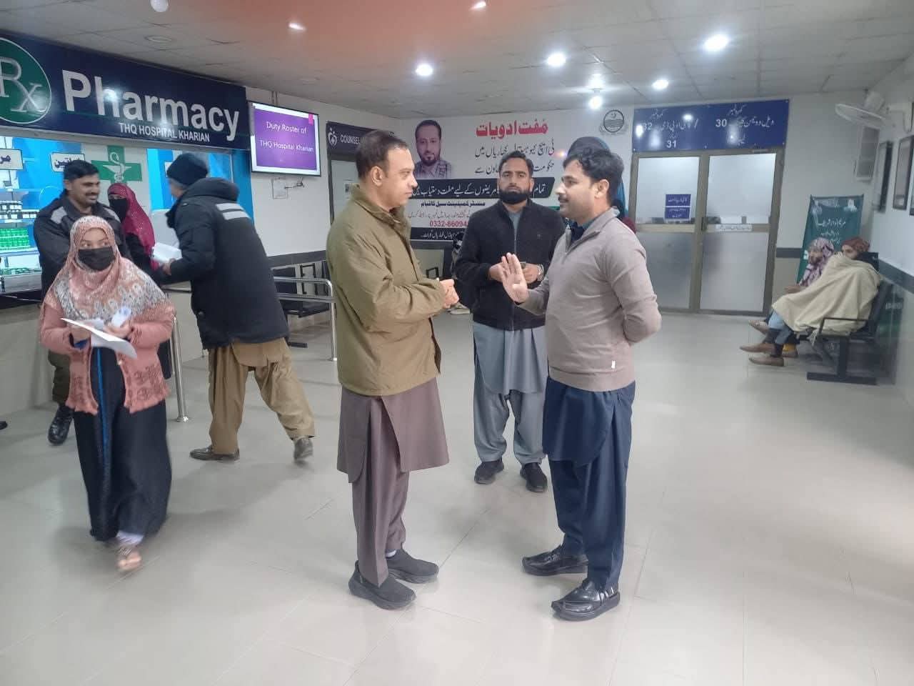 میڈیکل سپرنٹنڈنٹ ٹی ایچ کیو ہسپتال کھاریاں ڈاکٹر ظفر مہدی نے اس موقع پر ہسپتال کی کارکردگی اور جاری اقدامات سے متعلق بریفنگ دی۔