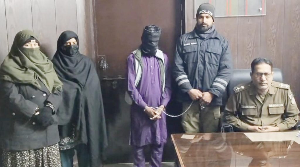 جس پر ڈی ایس پی سرائے عالمگیر سرکل ڈاکٹر ممتاز احمد میکن کی زیر نگرانی ایس ایچ او تھانہ صدر سرائے عالمگیر آفتاب رسول چوہان اور غلام رسول سب انسپکٹر نے اپنی پولیس ٹیم کے ہمراہ ریڈنگ پارٹی تشکیل دیں اور جدید ٹیکنالوجی اور انسانی ذرائع بروئے کار لاتے ہوئے ملزمان زین الطاف ولد الطاف حسین سکنہ چیلیانوالا اور نائلہ بی بی زوجہ واجد حسین کو گرفتار کرکے ملزمان سے آلہ قتل چھری اور چادر بھی برآمد کرلی۔