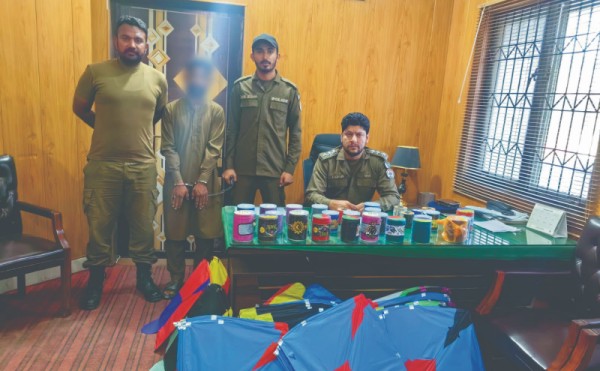 فہدالرحمن پولیس ٹیم کے ہمراہ بروقت کارروائی کرتے ہوئے بہترین حکمت عملی کا مظاہرہ کرتے ہوئے سماج دشمن عناصر ملزم کو گرفتارکرلیا۔جسکے قبضے سے بھاری مقدار میں پتنگیں 200 عدد اور دھاتی ڈوریں 45 عدد اور فروخت کی گئی پتنگوں کی وٹک 24ہزار 500روپے روپے برآمد کرلی گئی۔گرفتار ملزم کی شناخت محمد کامران ولد میر افضل ساکن علی چک کے نام سے ہوئی۔